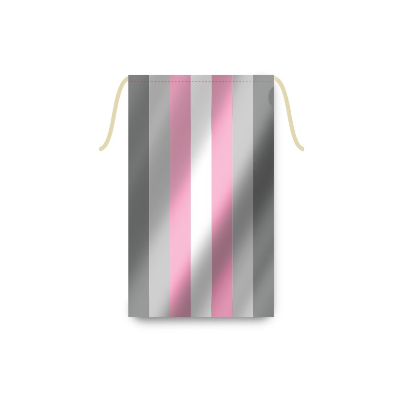 Demigirl Flag made from 100% shiny satin, featuring the authentic gray, white, and pink stripes. 90x150cm with integrated cords. Soft, lightweight, and crafted for daily affirmation.