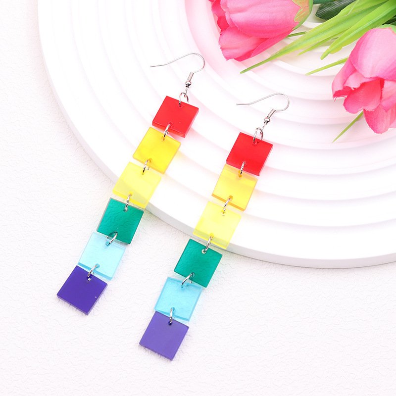 Geometric Square Acrylic Rainbow Earrings